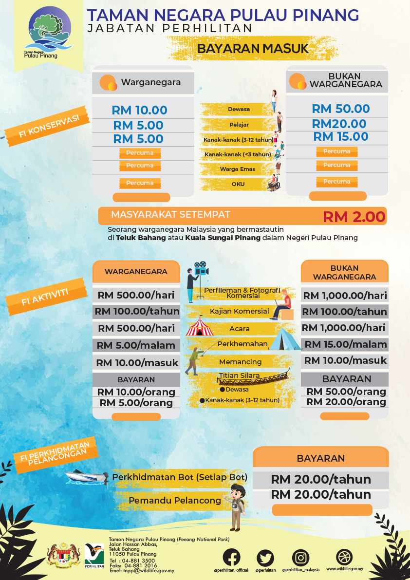 You can either take a taxi service or board Rapid Penang bus number 101 or 102 from Komtar Bus Terminal or Weld Quay Bus Terminal (Jetty). The bus will stop right outside the entrance to the National Park at Teluk Bahang.